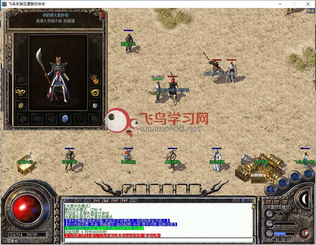 下面我们展示一组飞鸟学习网架设的三端互通传奇手游,本游戏支持开区支持电脑手游同步进行。文章源自飞鸟学习网-https://www.pk88.net/2021-0827-2.html