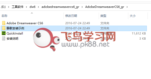 注:如果觉得“QuickInstall.exe”在文件夹比较碍眼的话,也可以放进Adobe Dreamweaver CS6文件夹下面,跟一堆文件放一起,他会自动识别。文章源自飞鸟学习网-https://www.pk88.net/2022-0103-2.html