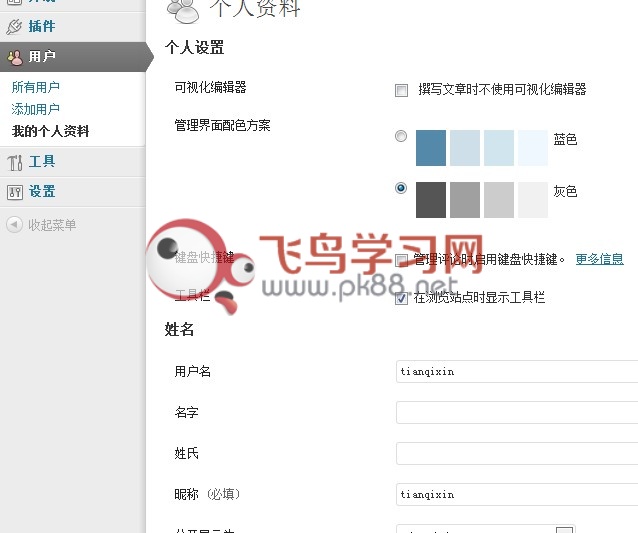 前面我们已经讲了wordpress后台使用教程之插件菜单的使用,现在我们继续来介绍wordpress后台使用教程之用户菜单的使用,wordpress用户菜单主要用于管理系统的用户,该菜单包含了以下3个子菜单:文章源自飞鸟学习网-https://www.pk88.net/2022-0803-5.html