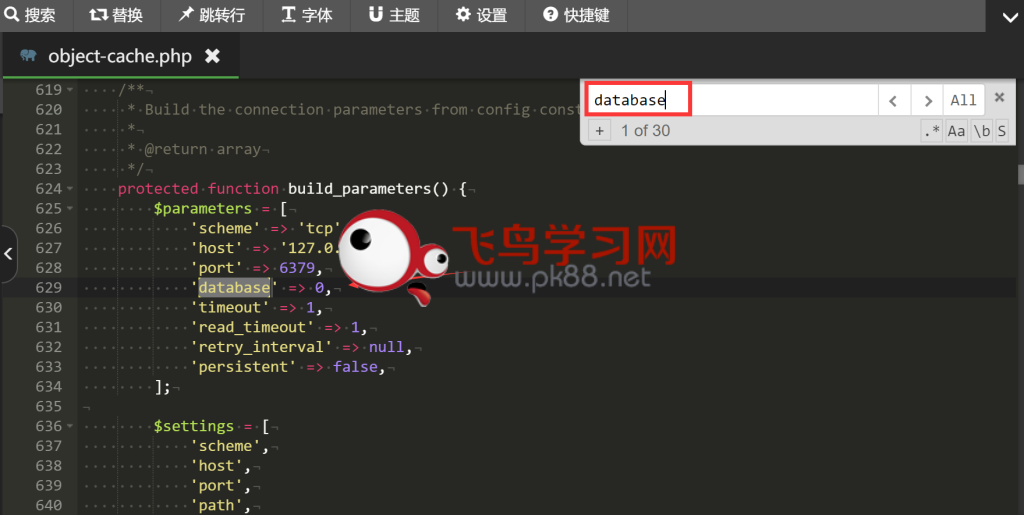 打开在网站根目录/wp-content/plugins/redis-cache/includes/里的object-cache.php文件搜索database 将后面的0改为1-15中其它空余的数据库名即可文章源自飞鸟学习网-https://www.pk88.net/2023-0815.html