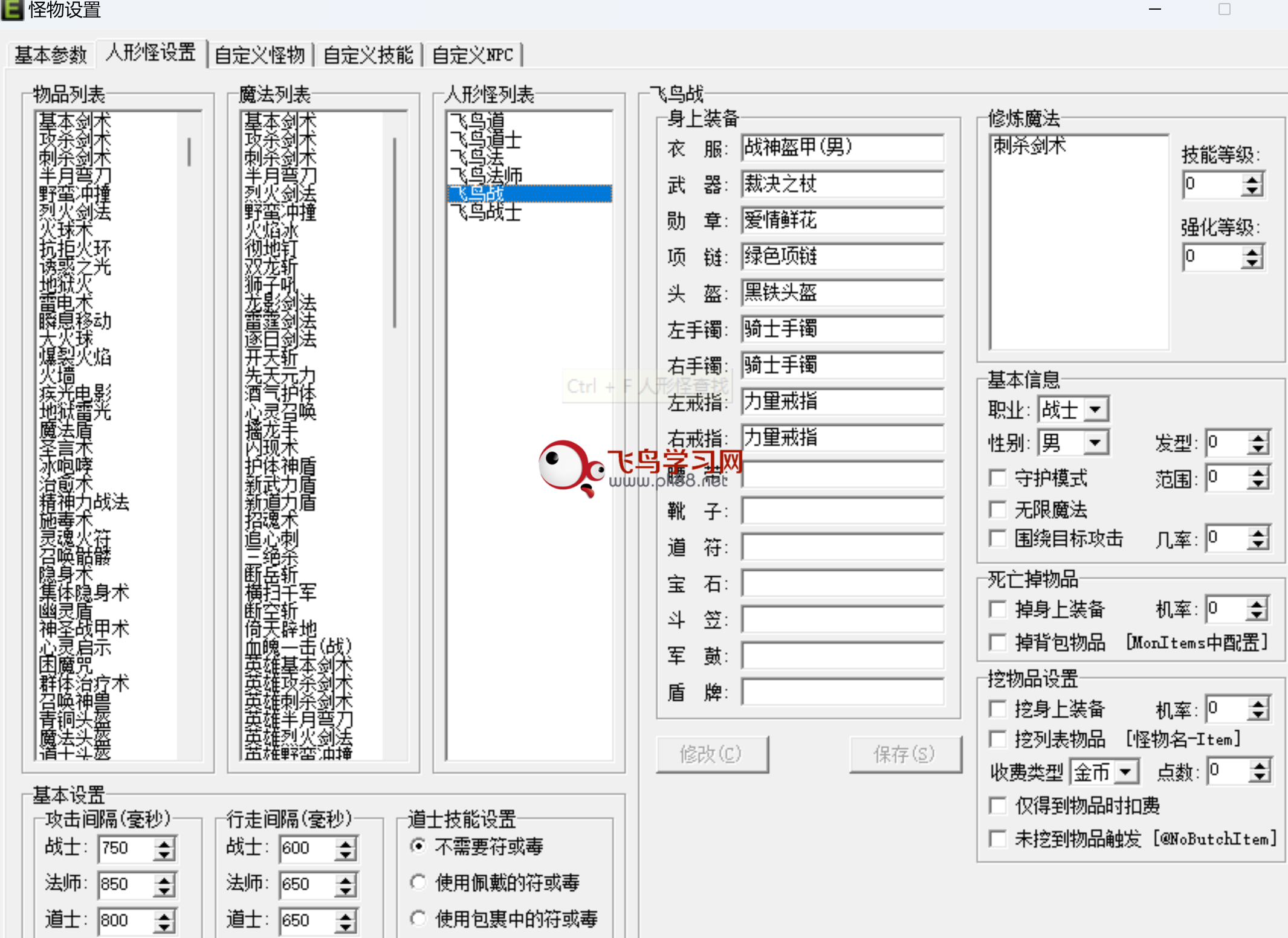 第一步,我们在DB数据库里添加好你要加的人形怪,怪物名称,攻击,防御等你自己随意设置,以下是加好的人形怪物DB文件,可以直接导入到DB数据库文章源自飞鸟学习网-https://www.pk88.net/2023-1028.html