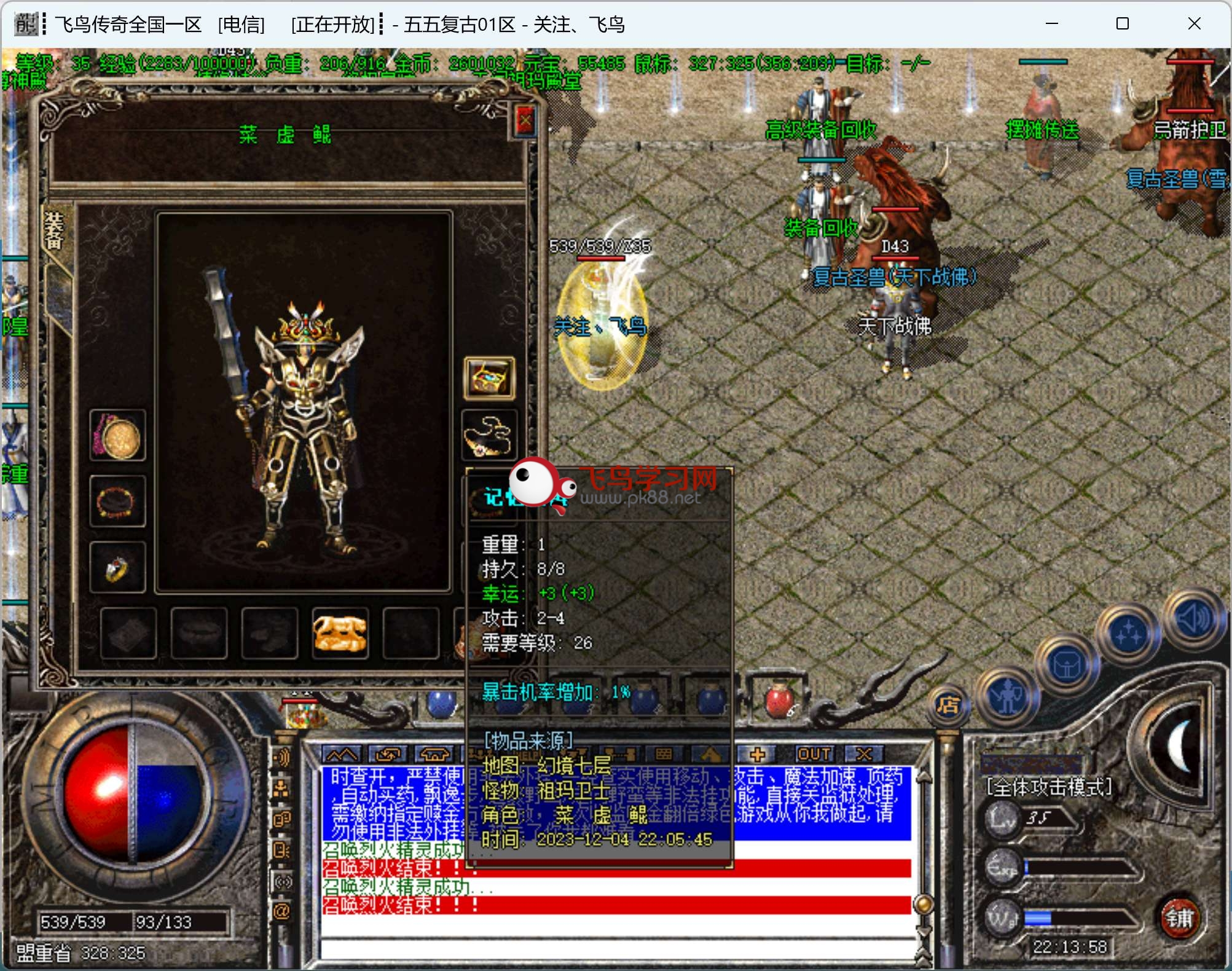 4.战士加强刺杀威力,缩短烈火时间,野蛮增强,高级别武器有属性加成让战士击杀BOSS更省心,打群架,攻城。5.烟花殿堂:本服唯一幸运3项链只有烟花老魔爆出。!文章源自飞鸟学习网-https://www.pk88.net/2023-1209.html