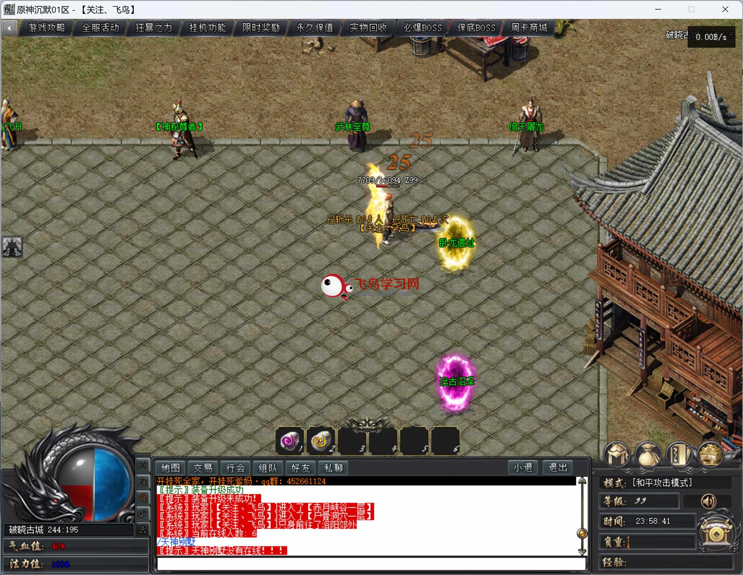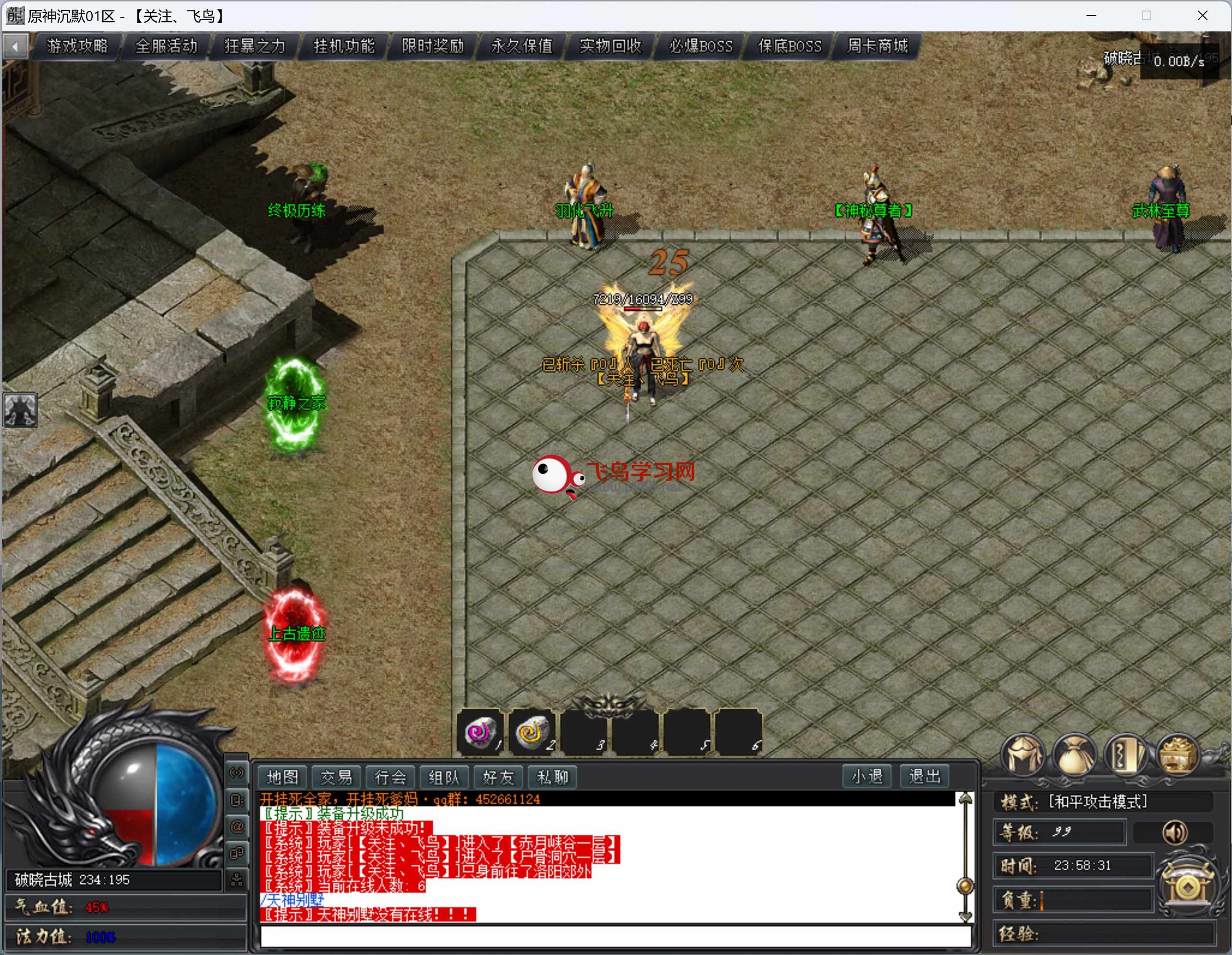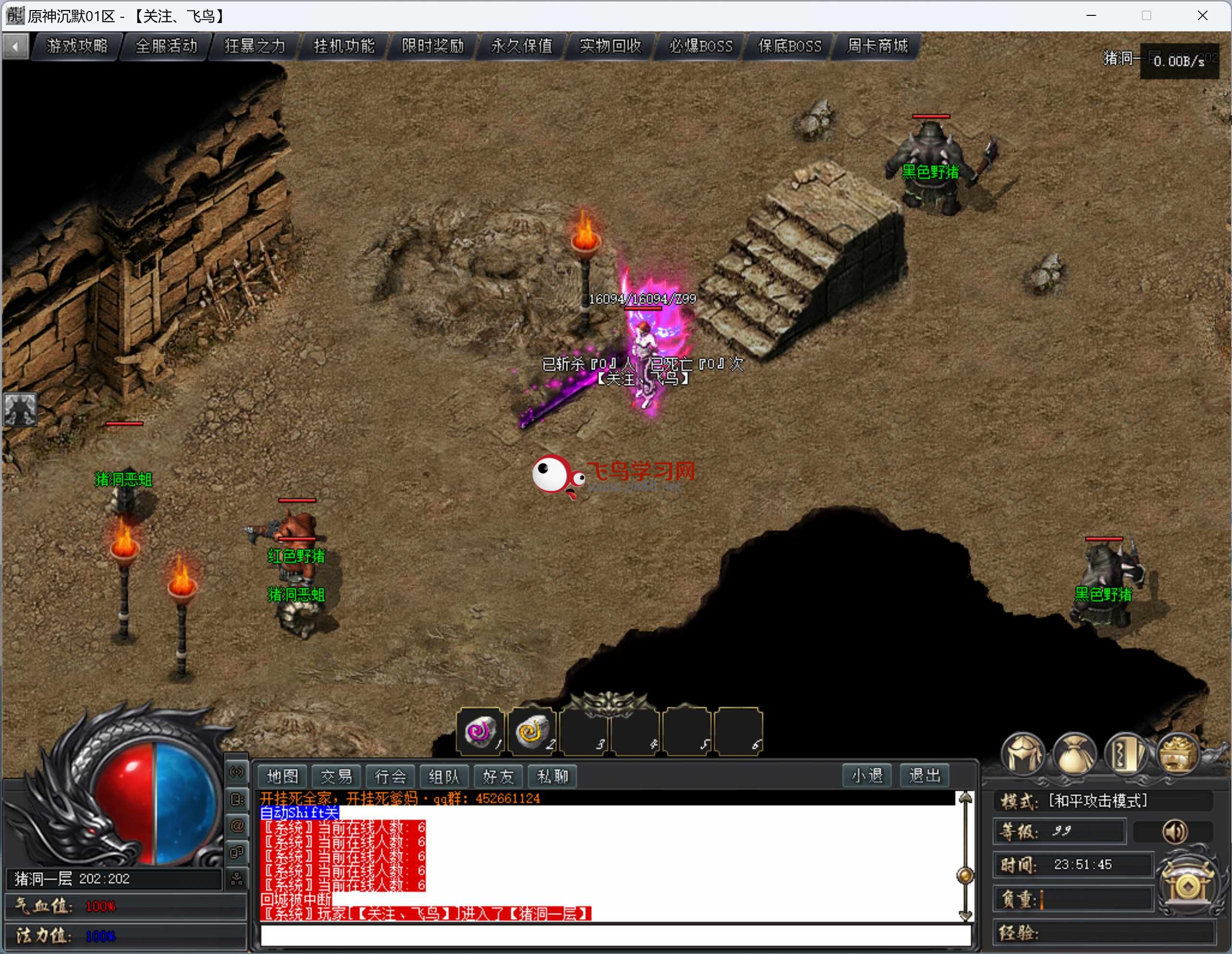 【小提示】:道士宝宝附带人物1.2倍属性,且攻击附带除魔印的真实伤害(CTRL+R锁定怪物人物)文章源自飞鸟学习网-https://www.pk88.net/2024-0116.html