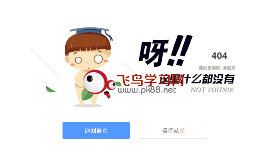对于对404页面没有其他特殊需求的朋友来说,有这样一个页面足矣,很多站长都在用文章源自飞鸟学习网-https://www.pk88.net/2024-0225-2.html
