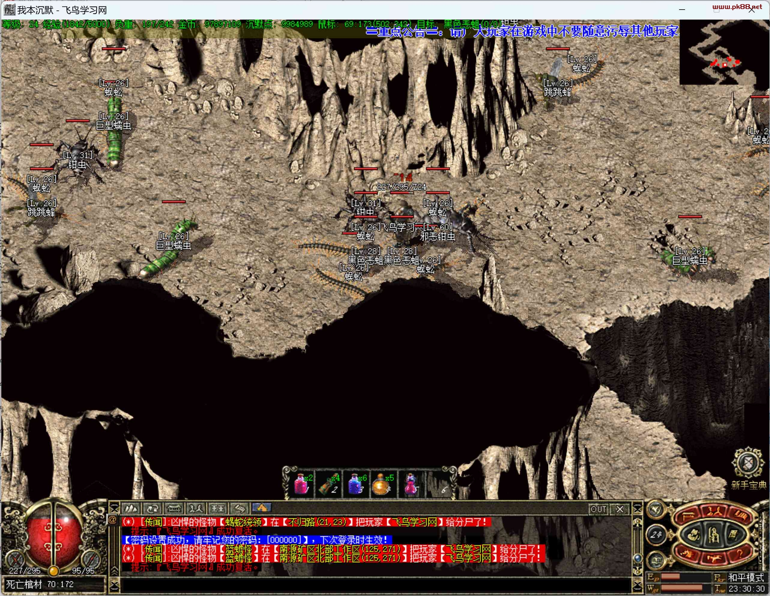 当等级装备有上来了,就可以闯荡整个沉默世界了。猪洞烧猪,祖玛阁,奴隶谷等都是升级好去处。
