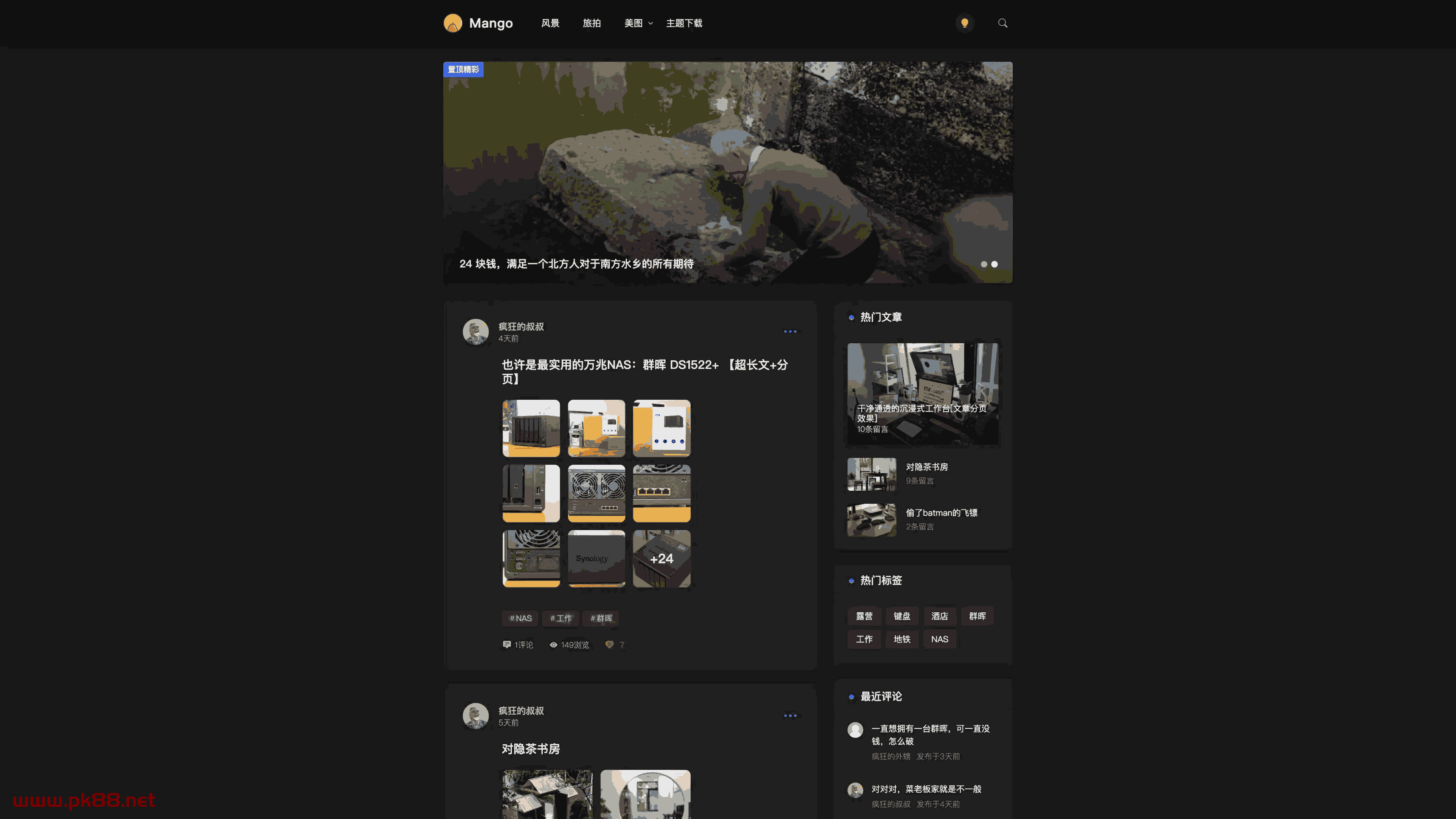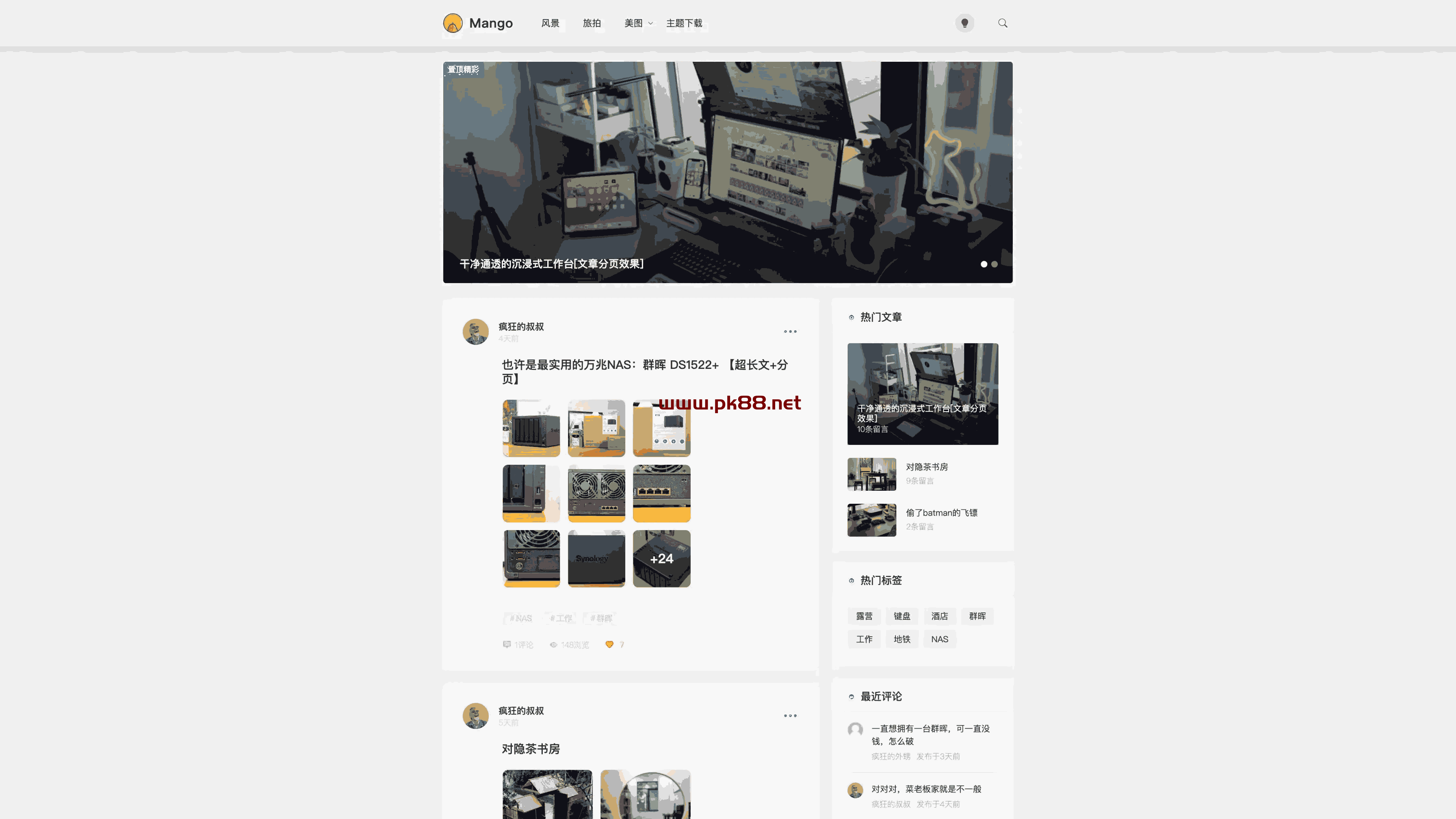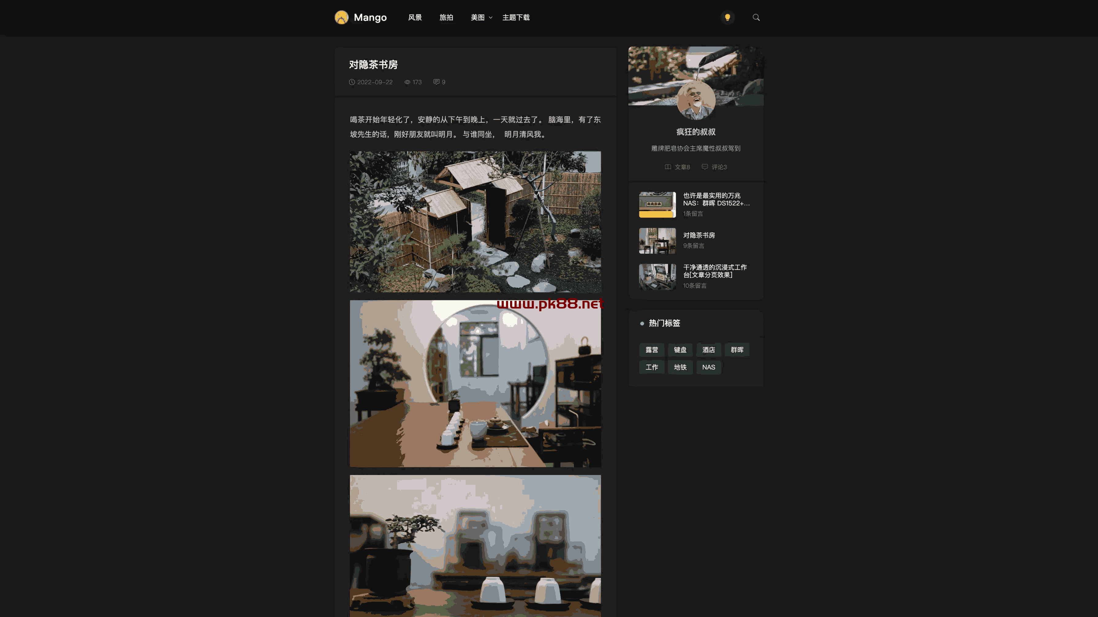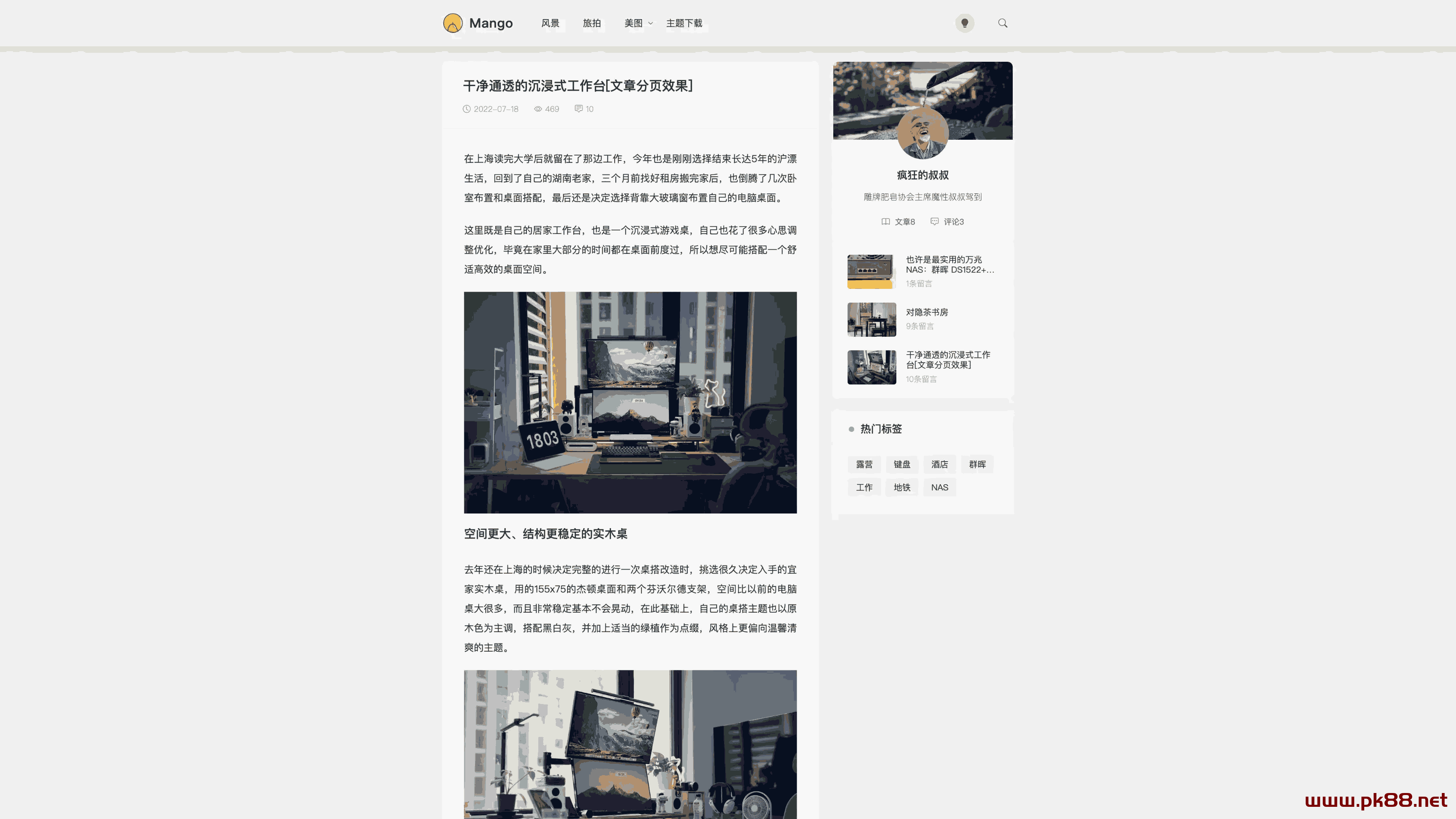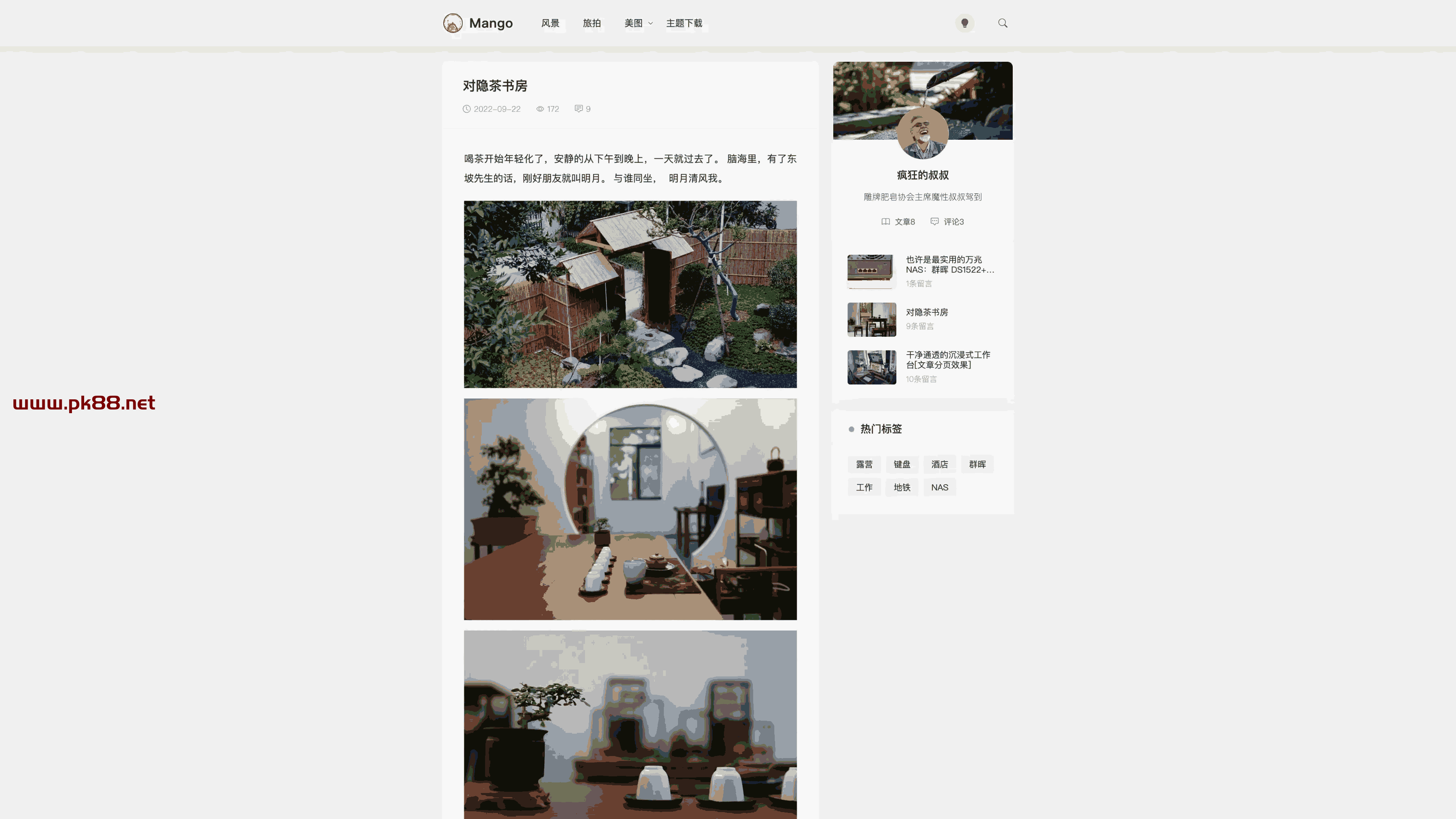 自定义小工具:增加了四个主题附赠的侧栏小工具,分别是热门文章、火热标签云、最近评论和作者信息,并对原生的一些小工具做了样式适配。文章源自飞鸟学习网-https://www.pk88.net/2024-0725-10.html
