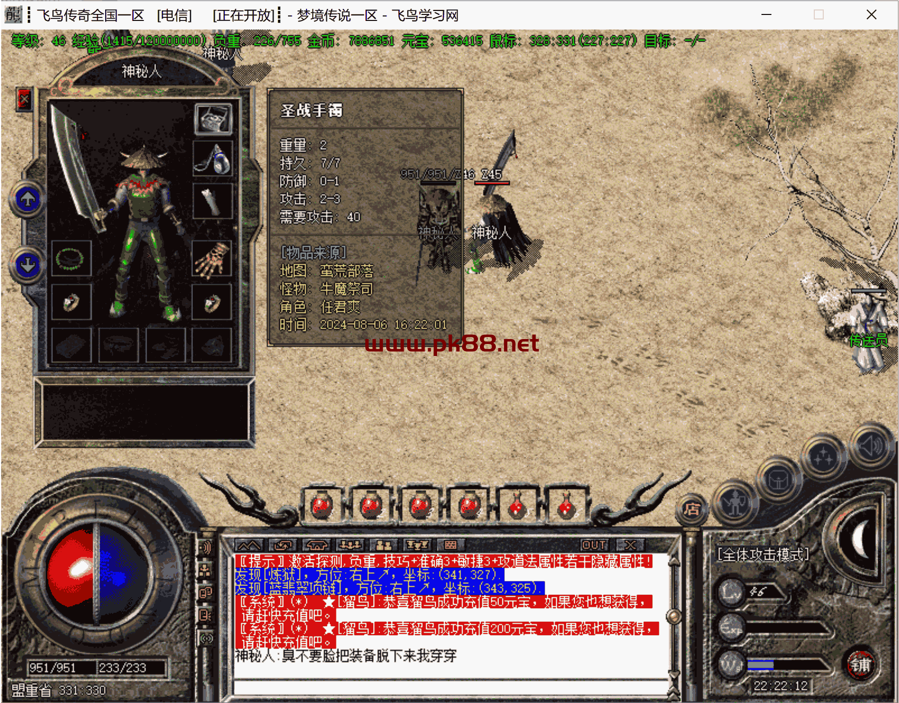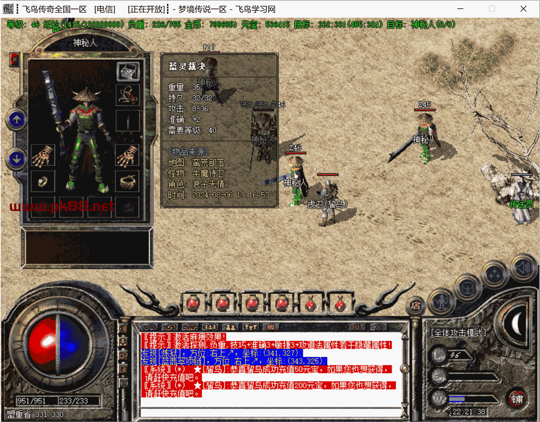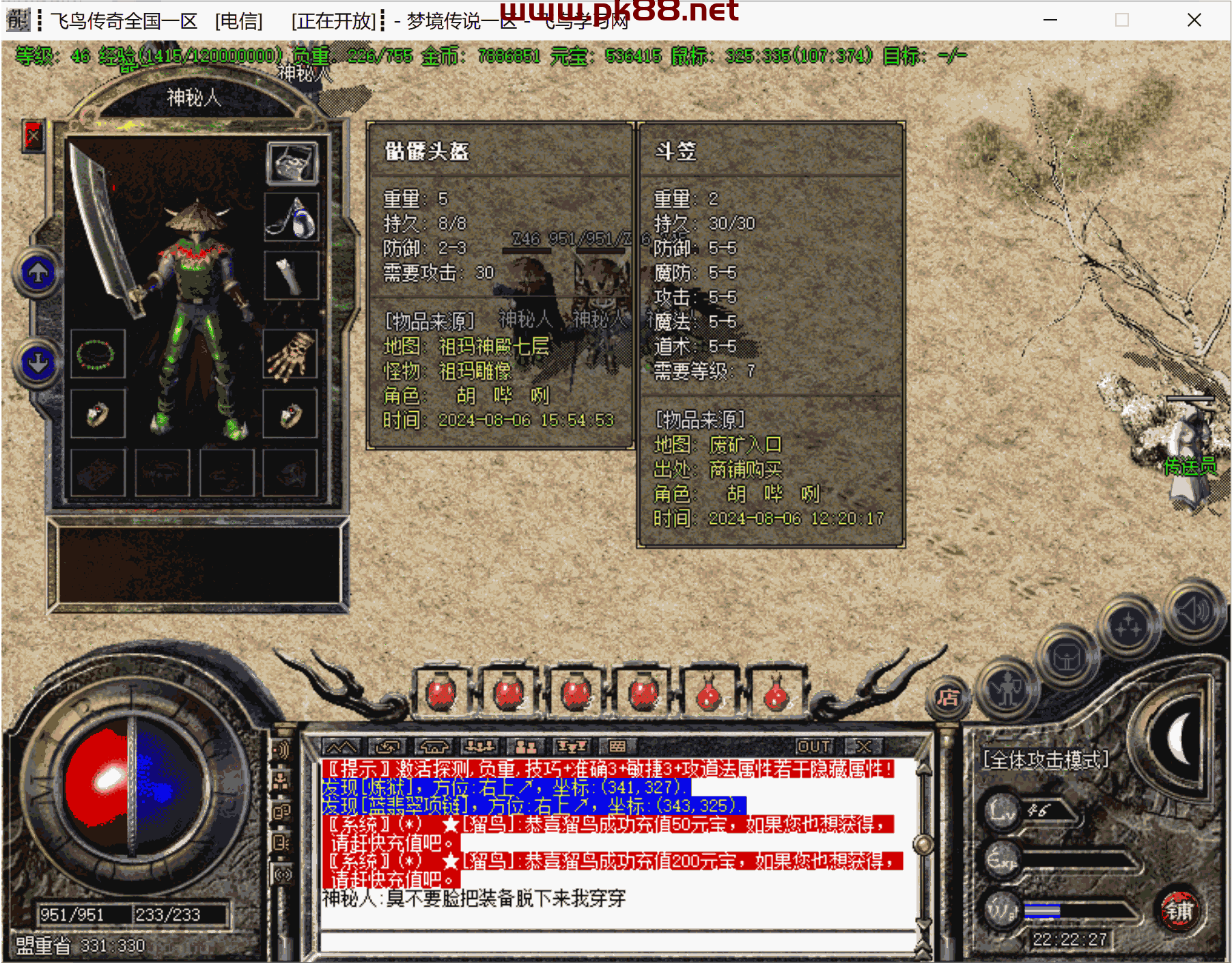 骨灰必玩!增加修复很多问题,双倍经验不加经验问题。增加隐藏属性。增加打怪爆率及升级经验倍率。更新斗笠属性。等很多问题。文章源自飞鸟学习网-https://www.pk88.net/2024-0806-2.html