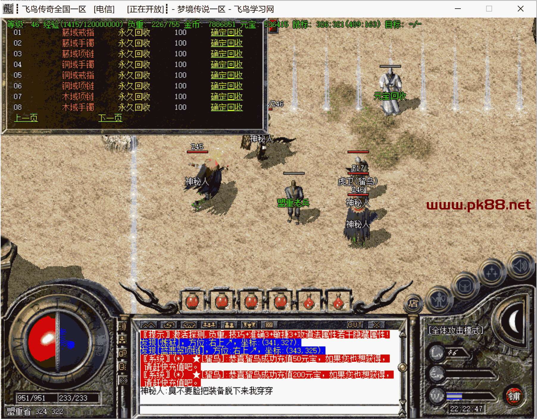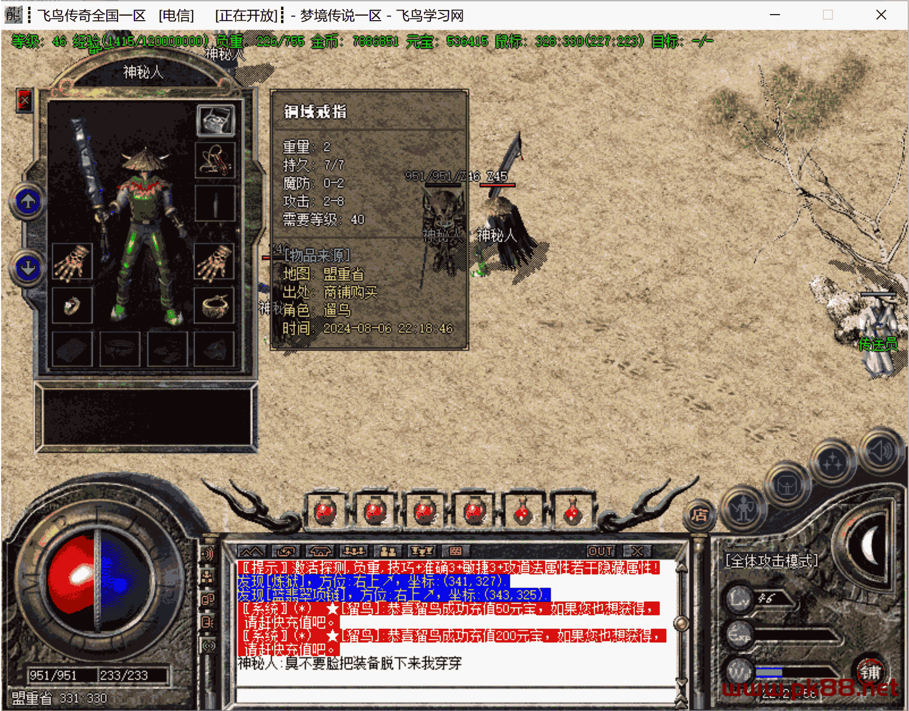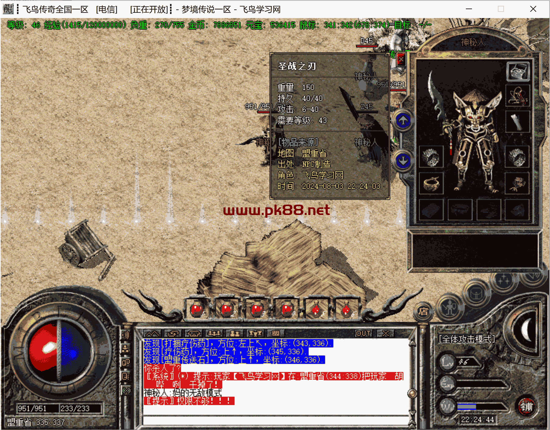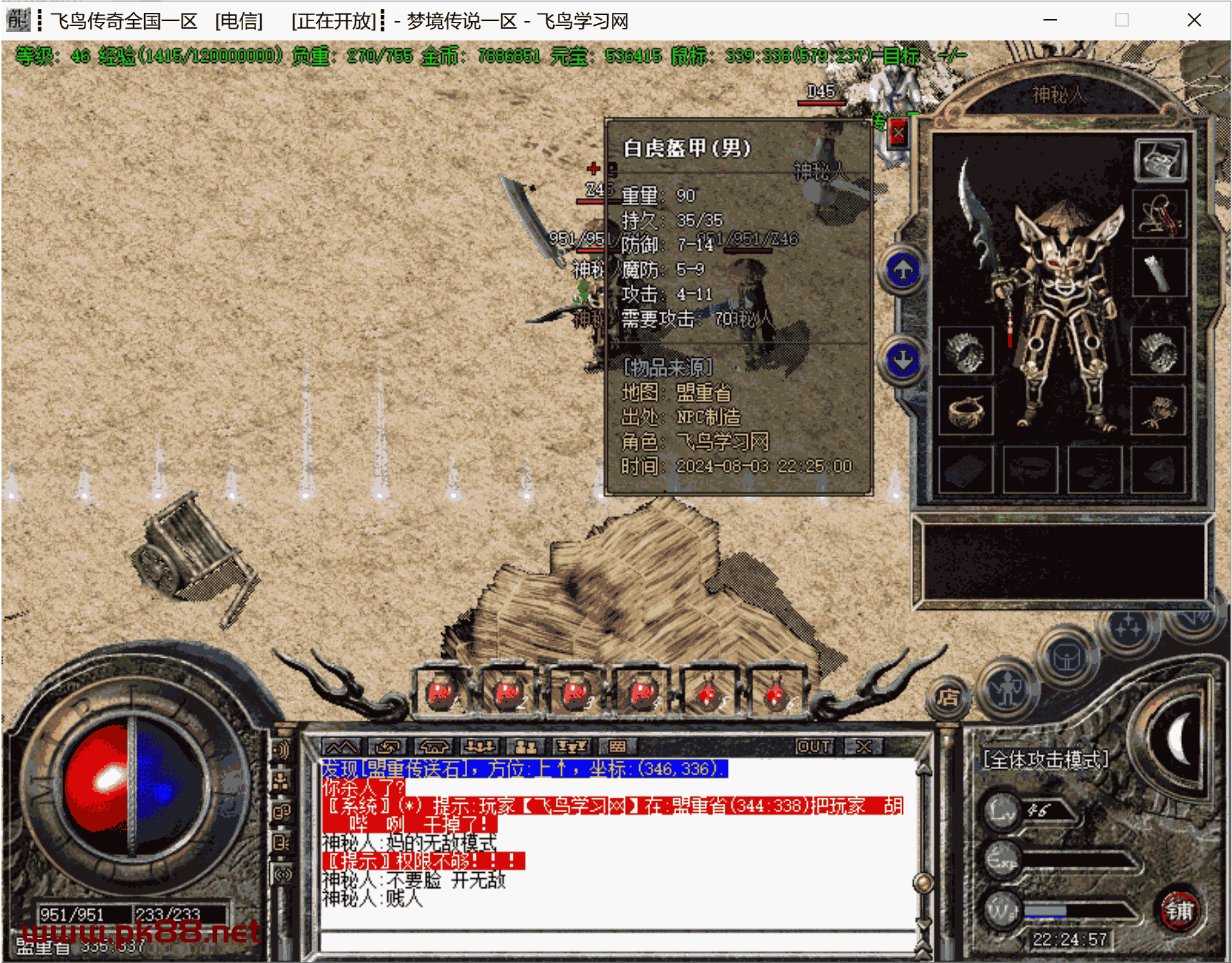 骨灰必玩!增加修复很多问题,双倍经验不加经验问题。增加隐藏属性。增加打怪爆率及升级经验倍率。更新斗笠属性。等很多问题。文章源自飞鸟学习网-https://www.pk88.net/2024-0806-2.html