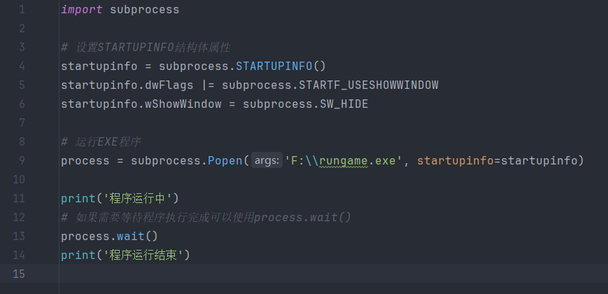 确保将C:\\path\\to\\your\\program.exe替换为你的EXE程序的实际路径。这段代码会启动程序,但不会显示任何窗口。文章源自飞鸟学习网-https://www.pk88.net/20241-0909.html 文章源自飞鸟学习网-https://www.pk88.net/20241-0909.html