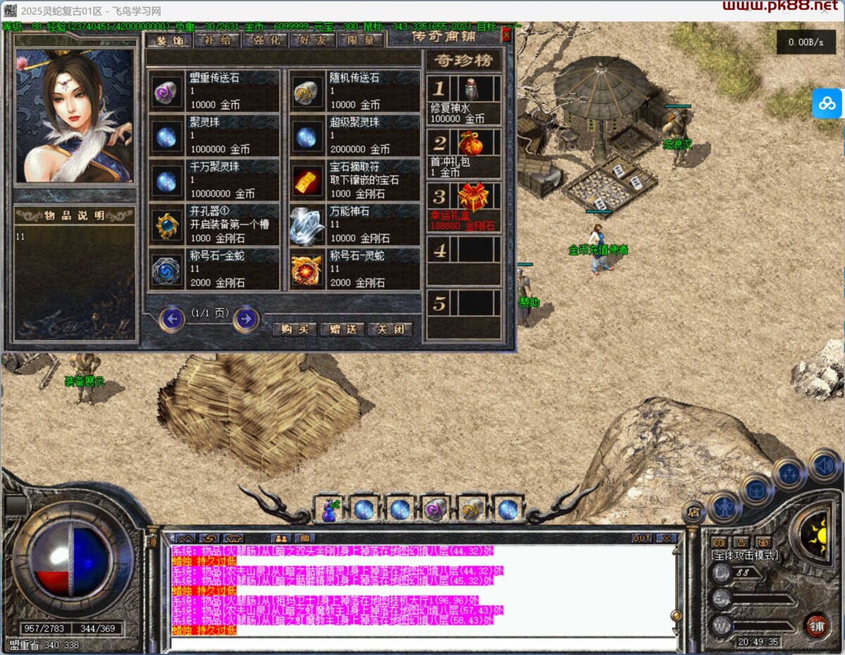 天塔顶层,75可以进入生肖界,怪物此生肖装备以及开孔器